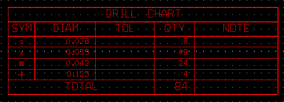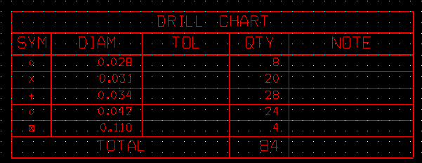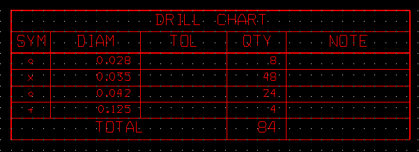 From the Drill Chart below there are 48 holes sizes 0.031" and 0.034". I will shift them up to a size 0.035". | |