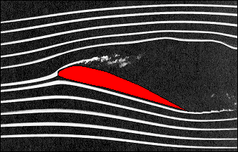 close to the top of the airfoil has separated from the airfoil surface