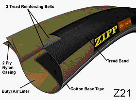 inside of the rim. Because it is a closed tubular structure, the tire does