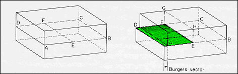 · The creation of an Edge dislocation via slip is illustrated below. · The ideal crystal is cut over the plane ADEF, and the material