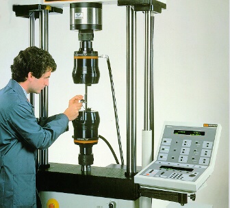· Testing machines are used to measure material response to various load-time profiles. · The diagram shows an Instron 8501 servo-hydraulic machine that can be used for obtaining material mechanical data. · Constant strain-rate measurements are normally used to obtain elastic constant, plastic deformation, and fracture data. · Materials may also be tested under load control, where the applied stress follows a programmed profile.