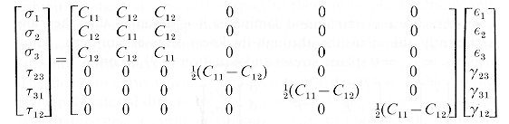 σ1 = C11ε1 + C12ε2 + C12ε3 and τ31 = 1/2(C11 - C12 )γ31 |