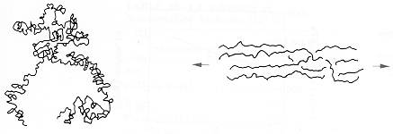 · The diagram shows a macromolecule at zero stress and under an applied tensile stress. The equilibrium separation between the free ends of the unstressed macromolecule: L = a(n)0.5 , where n is the number of segments in the molecule, and random orientation of the segments of length, a,is assumed. |