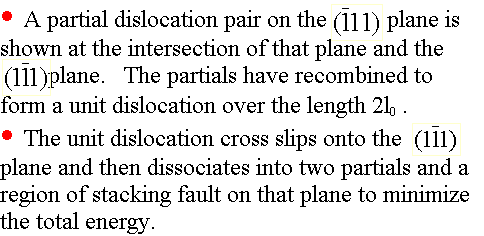 · The stages in the cross-slip of partial dislocations and their stacking fault is illustrated opposite. |
