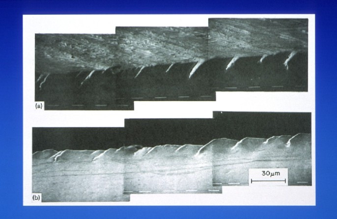 Persistent Slip Bands in an fcc single crystal produced by cycling at a constant strain amplitude.