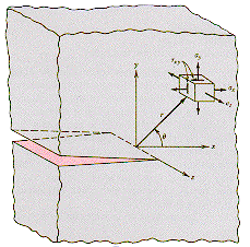 in an element of material near the crack. |