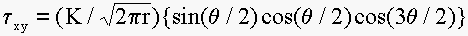 = K/(2πr)0.5 ,
