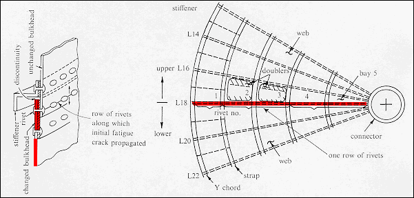 in the full pressure load being carried by one row of rivets. Fatigue crack