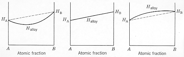 with B-atoms than with A-atoms, the enthalpy of the mixture is reduced (negative