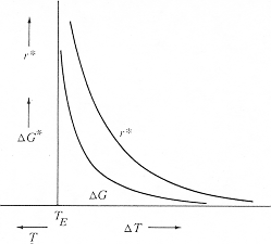 ΔG* = {16πγαβ3 / 3ΔHV2 }[ TE/ (TE - T)]2, r* = -{2γαβ / ΔHV}[ TE / (TE - T )] |