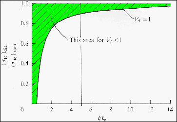 fracture stress ratio for short and long fibers as a function of (L / Lc) · For a fiber of length