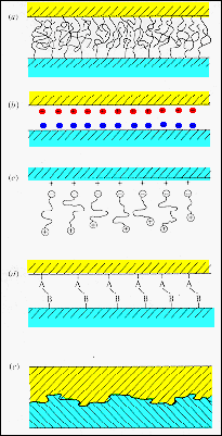 bonds can form between fiber surface groups and the matrix (d). · Mechanical bonds (e) between the matrix