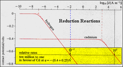 until its electrode potential, -0.4V, is reached. Above this threshold,