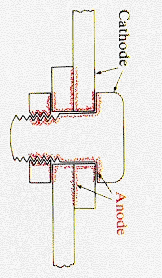 lower diagram, crevice corrosion in which the anodic regions are less exposed