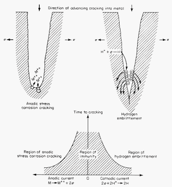cathodic behavior, hydrogen atoms created in the cathodic reaction cause