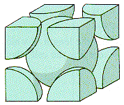 | Ferrite is an interstitial alloy of carbon in body-centered-cubic iron. The carbon interstitials can occupy edge centered or face centered sites in the bcc unit cell. The iron - Fe3C phase diagram indicates that the maximum solubility of carbon in ferrite occurs at the eutectoid temperature of 727 C and is 0.022 wt % C in the iron matrix. The bcc unit cell of iron has a lattice parameter of 0.286 nm. | ![]() |