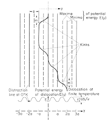 by barriers of higher energy. At 0 K the dislocation will tend to lie in