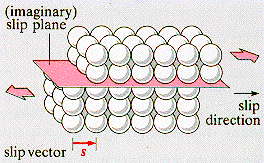 the slip plane is given by the slip vector, s. Slip is initiated when the