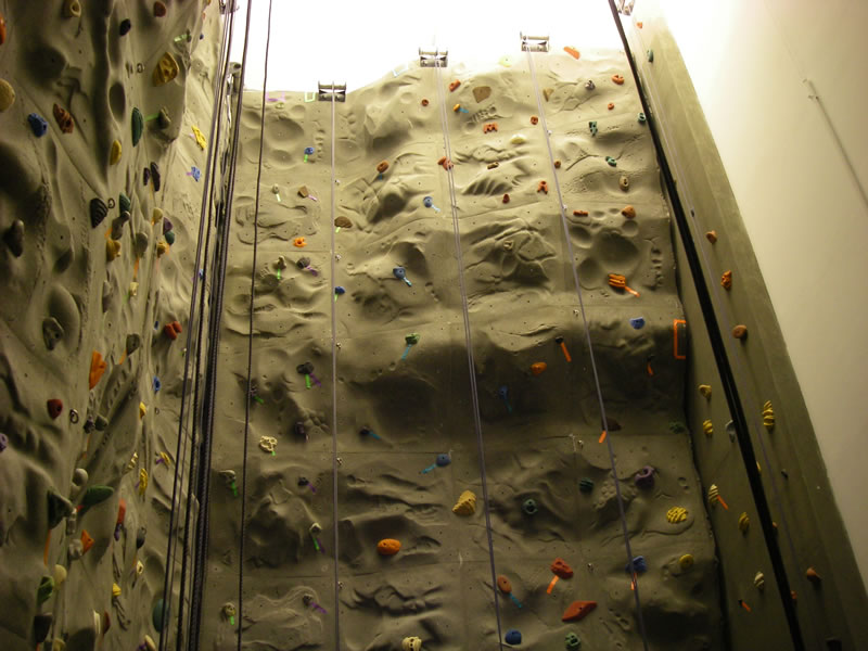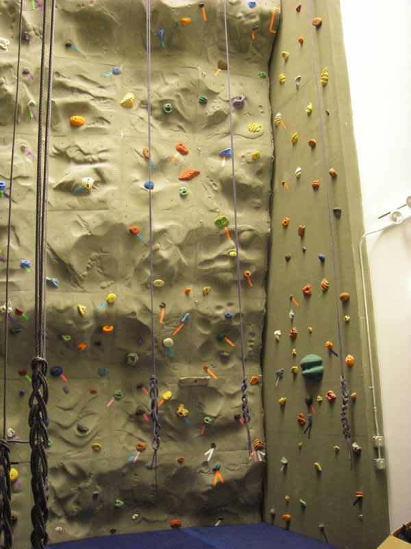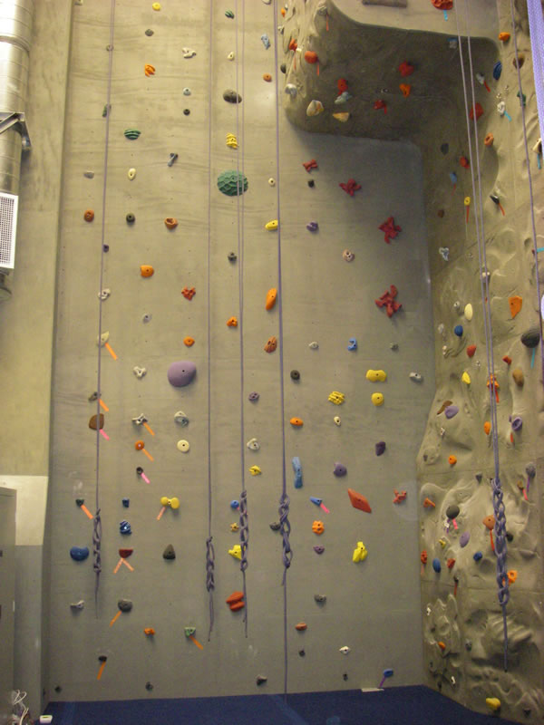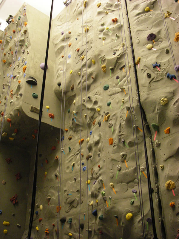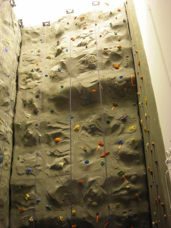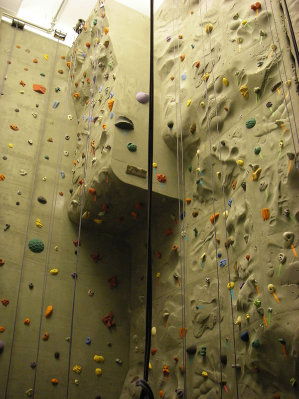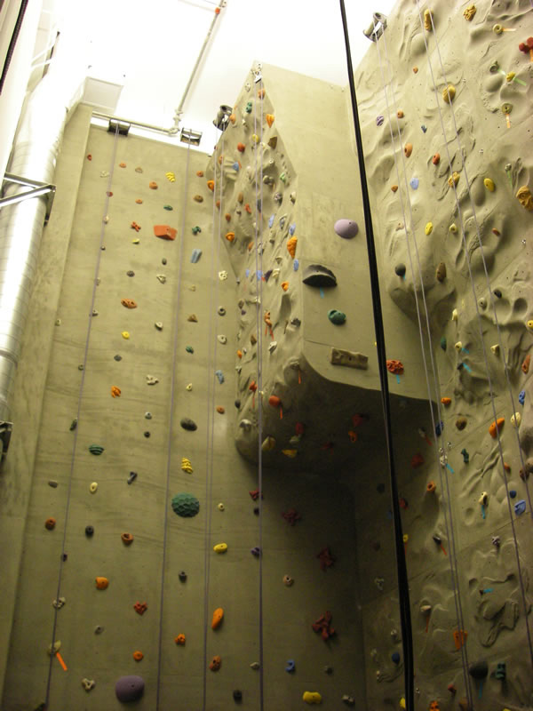 The new Climbing Wall was built in September 2007 by Entre Prises, one of the premiere climbing wall design companies in the world. The new Wall is 32 feet tall and 66 feet across and incorporate numerous climbing features including overhangs, a roof, cracks and a slab.