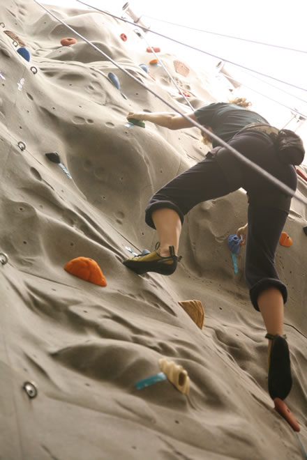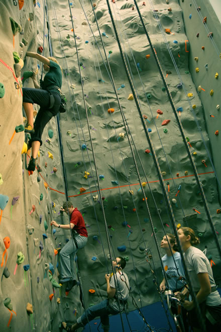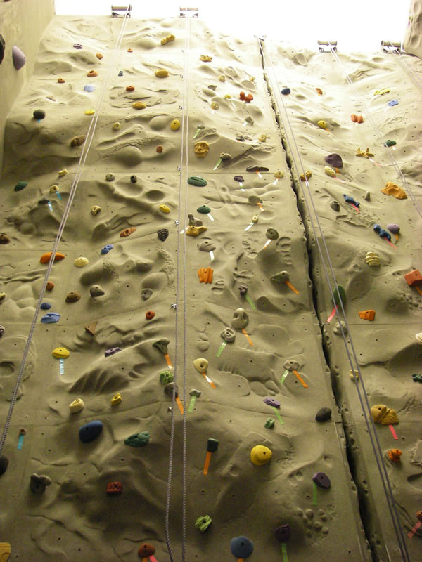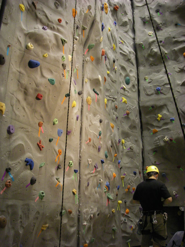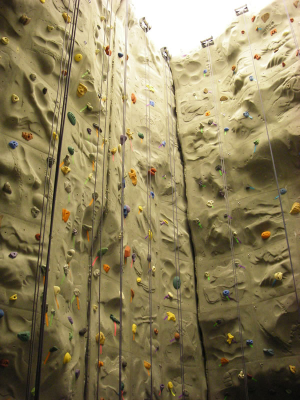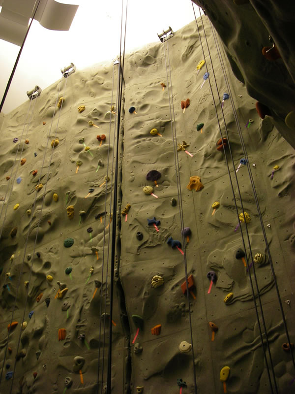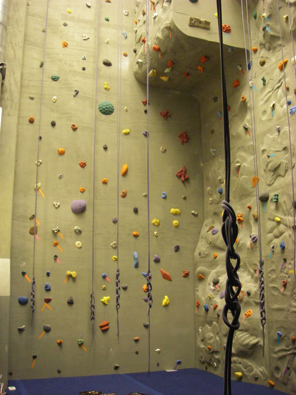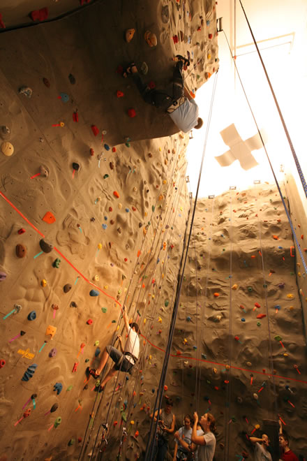 The new Climbing Wall was built in September 2007 by Entre Prises, one of the premiere climbing wall design companies in the world. The new Wall is 32 feet tall and 66 feet across and incorporate numerous climbing features including overhangs, a roof, cracks and a slab.