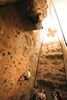 The very first section of the wall built in 1983 was a classic wooden vertical structure. There were no commercially available climbing holds at the time so we used wooden holds, machined holds out of aluminum, and glued on rocks that had been cut in half with the diamond saw at the geology lab. A new overhanging section designed by famed Gunks climber Mike Freeman was added in 1989 and a portion of the original wall was rebuilt in 1997.