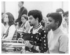 right, with classmates during a lecture in 1969. (Courtesy linda