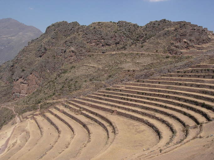 Aug. 22: At Pisaq, above the sacred valley of the Incas, terraces once used for farming dramatically trace the contours of the Andes .