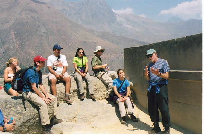 | Aug. 23: When the tour director asked study leader Vince Lee '60 *66 what teaching aids he would use on the trip, he simply answered, “ Peru .” At large archaeological sites like Ollantaytambo, above, and smaller sites on the trail, Lee taught lessons around every corner. He also lectured on his area of expertise, Vilcabamba, the last Incan stronghold, which was rediscovered in the 1960s. Lee's book, Forgotten Vilcabamba, is available on Amazon.com. |