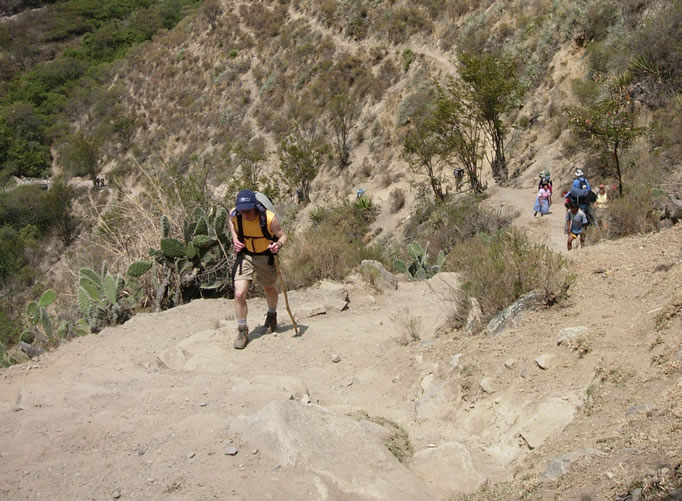 Our first three days on the Inca Trail included a vertical ascent of more than 5,000 feet. Here, Brad Pontz '91 begins the climb.