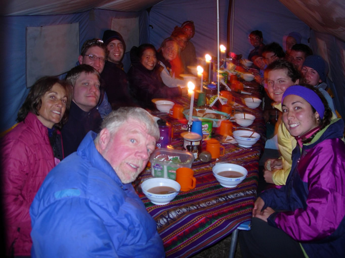 Aug. 26: With nighttime temperatures dipping below 40 degrees Fahrenheit, warm soups and wool caps were welcome in the dinner tent.