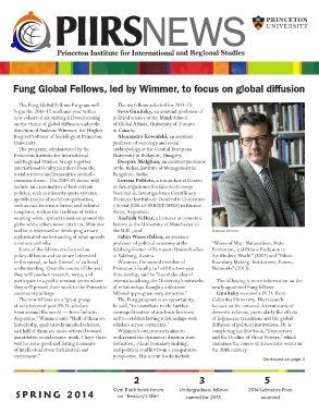 Fung Global Fellows, led by Wimmer, to focus on global diffusion The Fung Global Fellows Program will The six fellows selected for 2014-15: begin the 2014-15 academic year with a Seva Gunitsky, an assistant professor of new cohort of six visiting fellows focusing political science at the Munk School on the theme of global diffusion under the of Global Affairs, University of Toronto direction of Andreas Wimmer, the Hughes- in Canada; Rogers Professor of Sociology at Princeton Alexandra Kowalski, an assistant University. professor of sociology and social The program, administered by the anthropology at the Central European Princeton Institute for International University in Budapest, Hungary; and Regional Studies, brings together Deepak Malghan, an assistant professor international faculty members from the at the Indian Institute of Management in social sciences and humanities around a Bangalore, India; common theme. The 2014-15 theme will Lorena Poblete, a researcher at Centro include an examination of how certain de Investigaciones Sociales del Consejo policies, such as minority quota systems; Nacional de Investigaciones Científicas y specific modes of social categorization, Técnicas/Instituto de Desarrollo Económico such as race in census forms; and cultural y Social (CIS-CONICET/IDES) in Buenos templates, such as the tradition of brides Aires, Argentina; wearing white, spread to nations around the Aashish Velkar, a lecturer in economic globe while others never catch on. Wimmer history at the University of Manchester in said he is interested in developing a more the U.K.; and Andreas Wimmer sophisticated understanding of what spreads Fabio Wasserfallen, an assistant to where and why. professor of political economy at the “Waves of War: Nationalism, State Some of the fellows are focused on Salzburg Center of European Union Studies Formation, and Ethnic Exclusion in policy diffusion and some are interested in Salzburg, Austria. the Modern World” (2013) and “Ethnic in the spread, or lack thereof, of cultural Wimmer, the second member of Boundary Making: Institutions, Power, understanding. Over the course of the year Princeton’s faculty to hold the two-year Networks” (2013). they will conduct research, write, and directorship, said he “found the idea of participate in a public seminar series where internationalizing the University’s networks The following is more information on the they will present their work to the Princeton of relationships though a midcareer newly appointed Fung fellows: community at large. fellowship program very attractive.” Gunitsky received a Ph.D. from The new fellows are a “great group The Fung program is an opportunity, Columbia University. His research of very talented post-Ph.D. scholars he said, “to contribute to the further focuses on the external determinants of from around the world — from India to cosmopolitization of academic horizons domestic reforms, particularly the effects Argentina,” Wimmer said. “Half of them are and to establish lasting relationships with of hegemonic transitions and the global historically, qualitatively minded scholars, scholars across continents.” diffusion of political institutions. He is and half of them are more oriented toward Wimmer’s own research aims to completing his first book, “Democracy quantitative social science work. I hope there understand the dynamics of nation-state and the Decline of Great Powers,” which will be some good and lasting moments formation, ethnic boundary making, examines the causes of democratic waves in of intellectual cross-fertilization and and political conflict from a comparative the 20th century. excitement.” perspective. His recent books include Continued on page 4 2 3 5 S P R IN G 2 0 1 4 Cyril Black book forum Undergraduate fellows 2014 Labouisse Prize on ‘Treasury’s War’ awarded named for 2015