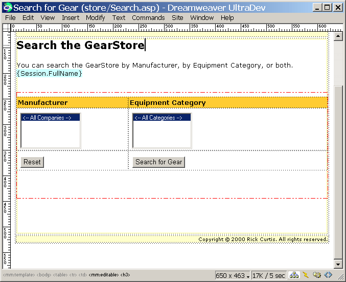 Well, that's it! As I said there are lots of ways to do this both in terms of page flow, database design and page code. This is just one approach that has worked for me. I hope that it helps you in your E-commerce development. Happy coding. Rick Curtis PS. People often ask me for source code, databases, etc. Like many others I use UltraDev as part of my business. The tutorials are a free service to the UltraDev community. Completed applications, databases, and source code cost me time and money to produce and are therefore not provided for free.