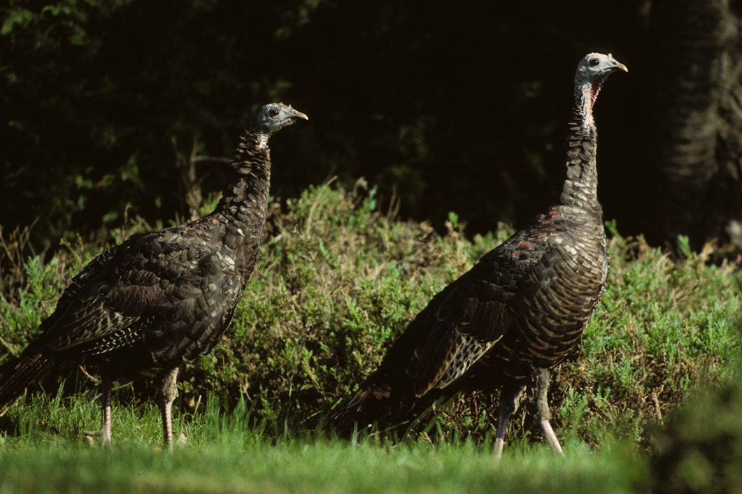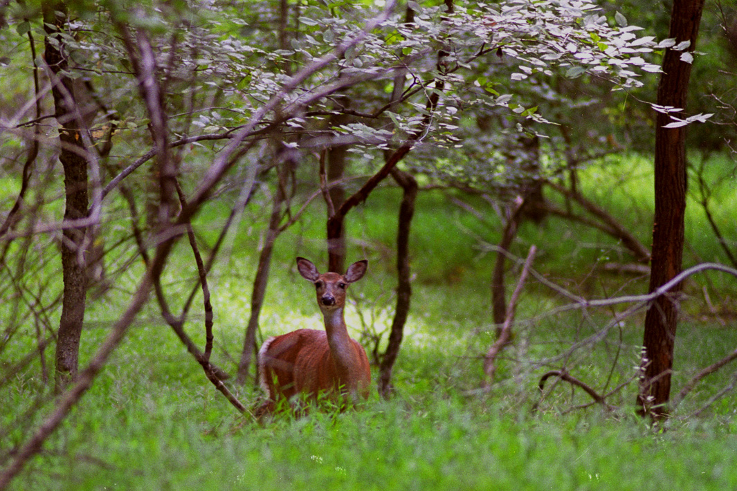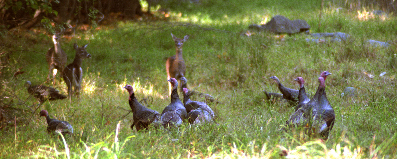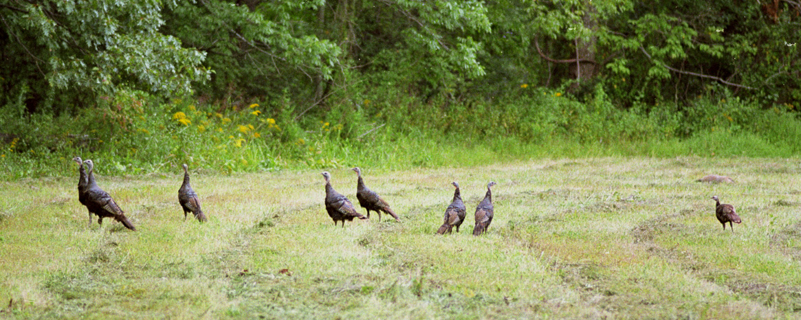 Anyone walking in the woods who keeps his eyes open will, from time to time, notice turkey heads bobbing up and down in the undergrowth. At this point, let the chase begin! I had chased this flock for about 300 yards when the turkeys crossed into a firebreak and were confounded by a couple of deer that were grazing there. Did they mistake the deer for predators, or were they just tired out? I suspect that a spear or landing net would be ample armament for turkey hunting in Princeton.