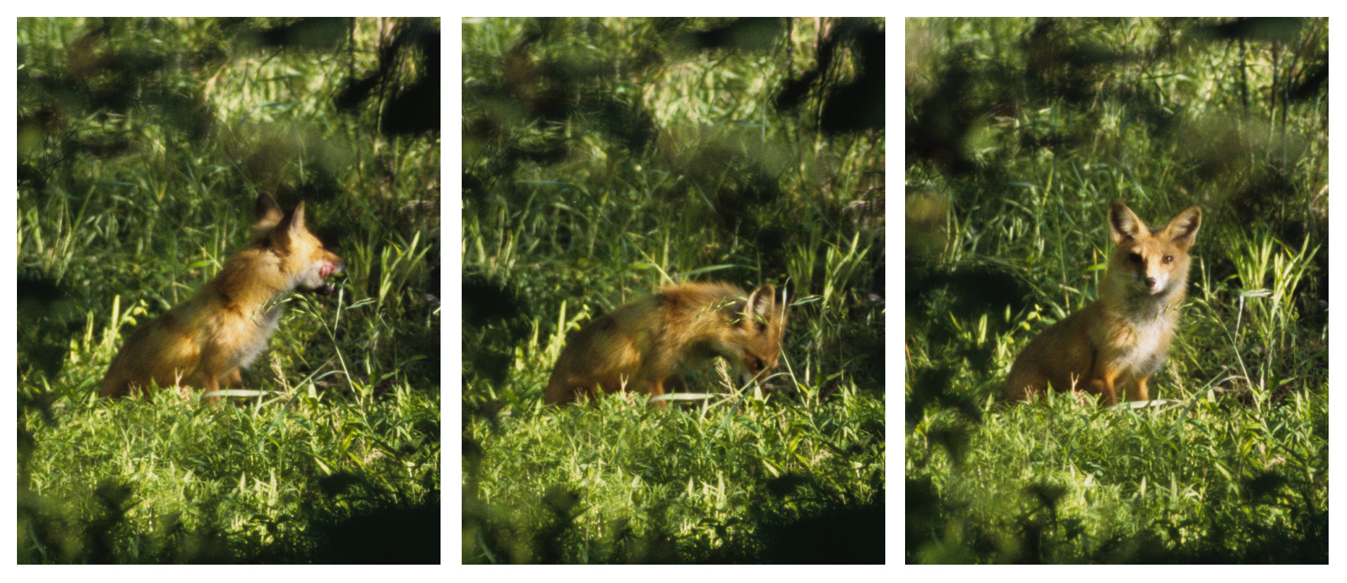 It would be nice if there were more true predators in the Princeton woods. About the only ones to be seen (and rarely) are foxes and coyotes, but they are not big enough to engage successfully in mortal combat with the larger vermin. Here is a fox munching on a small mammal, truly "nature red in tooth and claw". I wish it would have been a goose so the I could have seen the bloody feathers fly!