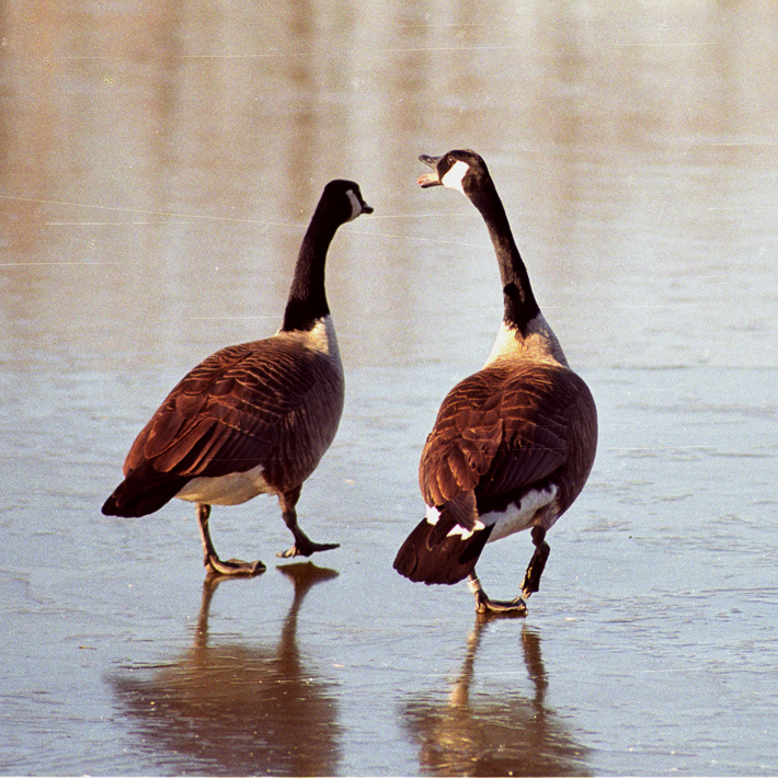 However, the subject of waterfowl brings up the first, most numerous, and most disgusting of the Princeton vermin: the Canada Goose. These filthy creatures can pop up anywhere. They seem to have no functions other than to squawk at passers-by and to turn grass into fertilizer. Moreover, despite being classified as "migratory waterfowl" by the federal government, most of the geese are too stupid to fly south in the winter! (It was 10 degrees F when I took this picture.)