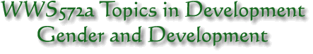 This course examines men and women's lives in less developed countries and the impact upon them as a result of development and incorporation into global, economic and political systems. The course begins with theoretical approaches to gender and development, development theory, and feminist critiques. We then turn to how social change (positive or negative development) happens. We will examine in detail issues of production (formal and informal work), reproduction (health, child survival, and fertility), and the family/household nexus (where production and reproduction meet). Woven throughout the course will be themes about 1.) micro and macro processes, perspectives, and levels of analysis and 2.) research methods and policy applications, given a practitioner's structural position. The course will have two applied projects for students to work on. The first is the development of material for a web page, and two internet online discussions, The Gender and Development Policy Network, run through the Woodrow Wilson School. The online discussions will be about: a) gender and globalization, and b) bringing gender into program planning and evaluation. The second project is to assist the new Gender Division of the World Bank in assessing the gender content of Bank projects. This will involve summarizing the gender content of 40-50 projects at the Bank, selecting and analyzing 5 case studies among the projects, and writing an evaluative report for limited circulation within the Bank.