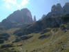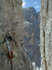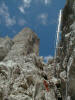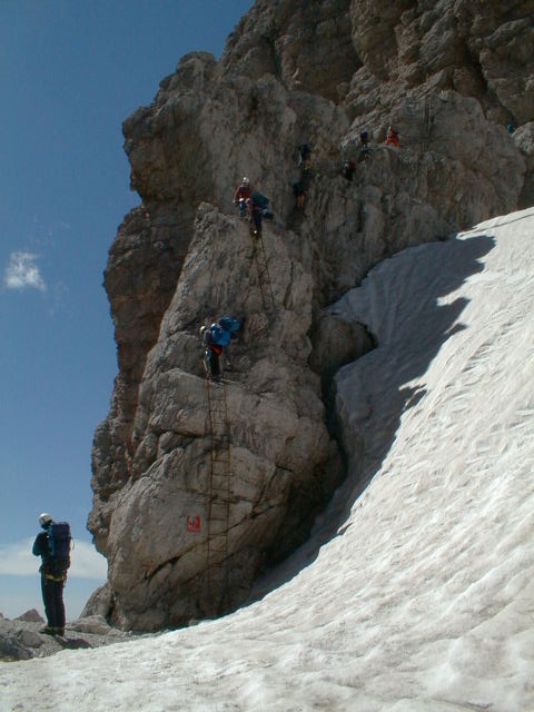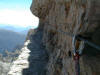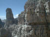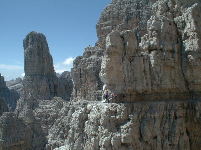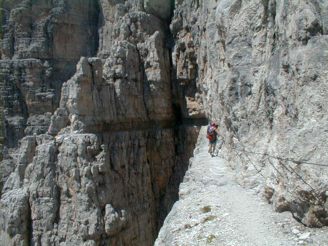 This is one of the most popular via ferrata among all Dolomites. It is not particularly difficult but certainly requires great caution. It connects Rif. Alimonta with Rif. Pedrotti, mostly at an altitude of 2600-2800m. In hot summer, the path could be overcrowded. Be aware! (Pictures taken on 7/24/1999)