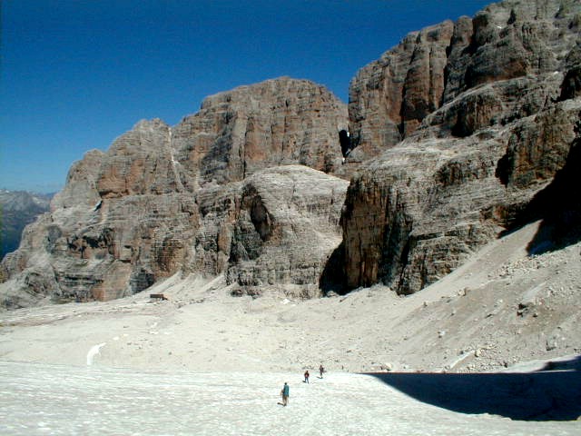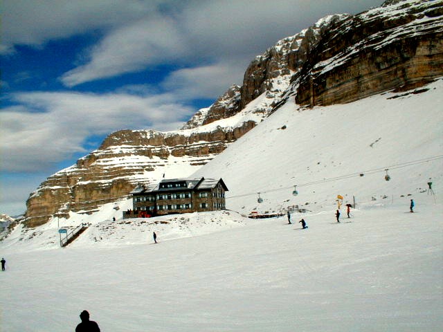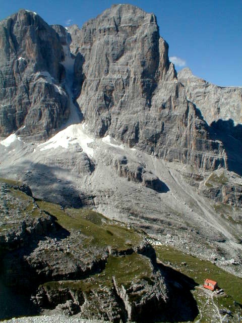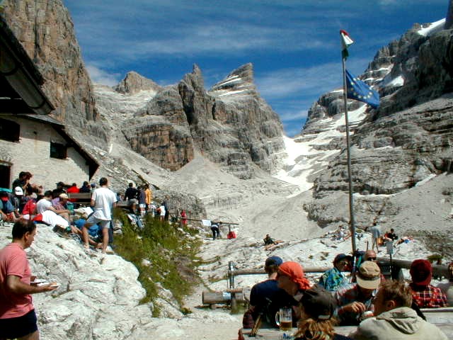 There are a number of mountain huts ("Rifugio") in Brenta Dolomites (as well as other Dolomite groups). Strategically placed with the original scope of acting as a base for climbers, they nowadays also provide walkers with basic overnight accommodation and warm meals at reasonable prices. Most of them offer dormitory-type bunk beds. They usually operated from 20 June to 20 September. It could be crowded in summer season so it's always a good idea to call in advance for reservation. Some huts will open in ski season in winter, but only provide drinking and eating service.