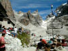 A few remarks on behavior in refuges: hiking boots are not worn inside, but taken off and left on appropriate shelving, usually just inside the front door. Some places provide rough slippers, otherwise take your own gym shoes or similar. A refuge has restricted space where living together calls for politeness and common sense; respect for the others asleep in the dormitory at night and the early morning. The refuge's generator is turned off at 10 pm, in line with Alpine Club regulations for "light out" and silence from 10pm to 6am.